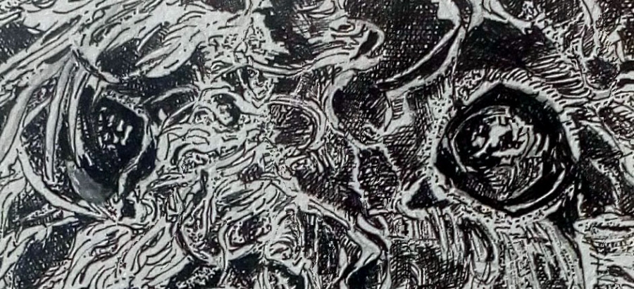 I use Edding Pens and Profi Pens of varying line thickness to draw and apply these to art paper to make the drawing. I use a mixture of techniques including stippling, hatching and long and short sweeps of pen to create the weight and tone of the image and white highlights where needed to emphasise key areas.